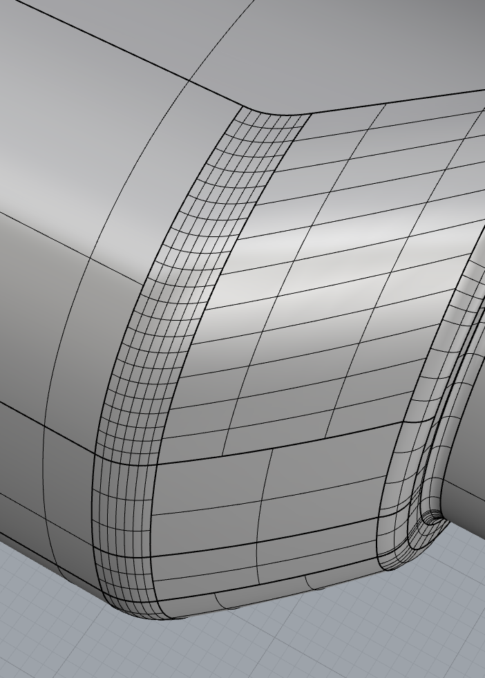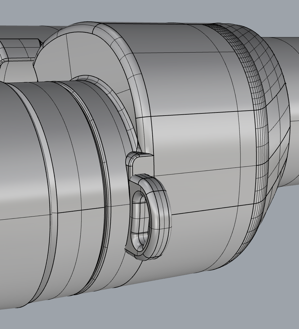 複雑な形状のプリズムや内部の構造を最小限で無駄のない面で包む、ユーザにとってより魅力的な形を探す。細部はアプリケーションのコマンドで思うようにいかないことも多く、最終的にはちまちまと手作業で面を縫い合わせる作業が必要になる。